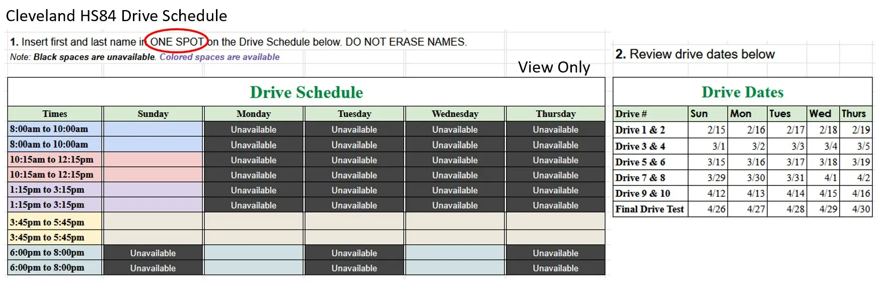 SAME DAY SIGN-UP FOR DRIVE TIMES