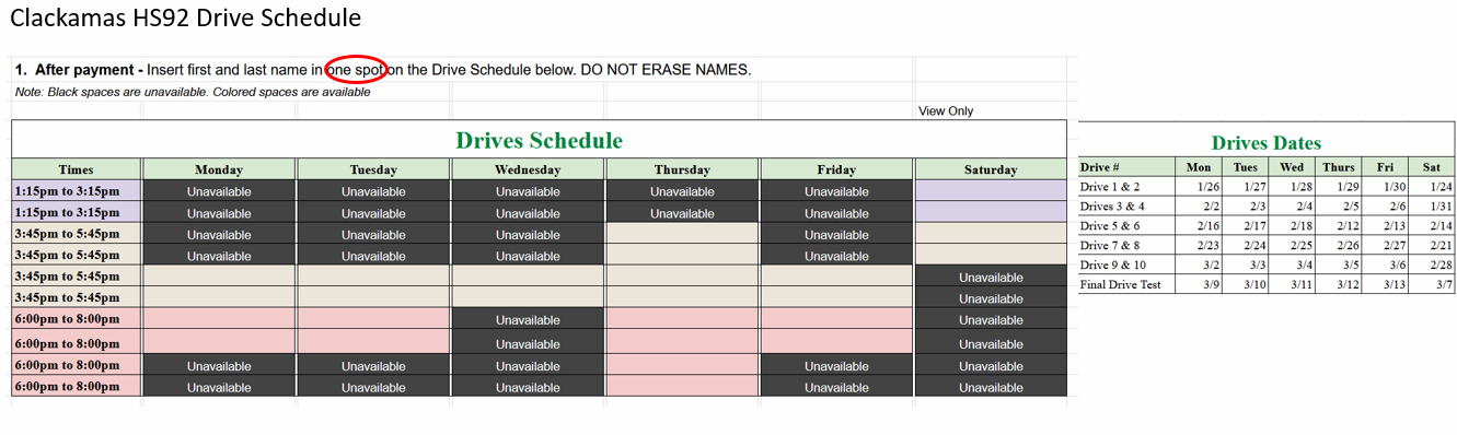 SAME DAY SIGN-UP FOR DRIVE TIMES — When you enroll in this class
