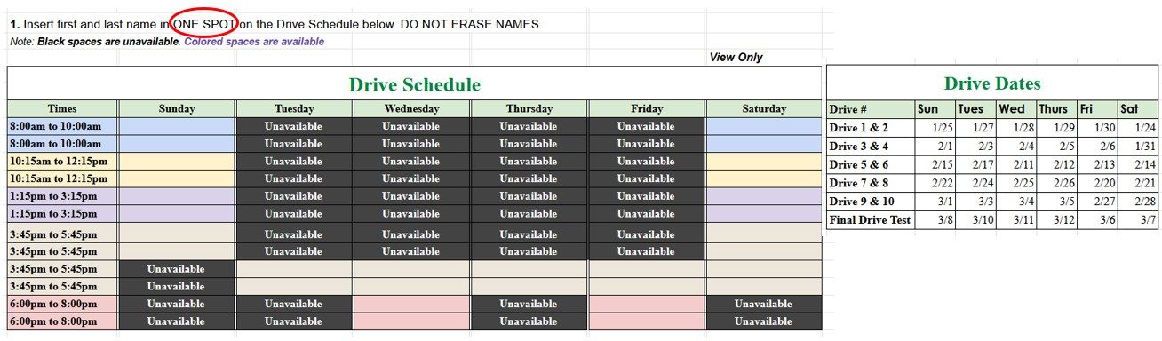 SAME DAY SIGN-UP FOR DRIVE TIMES