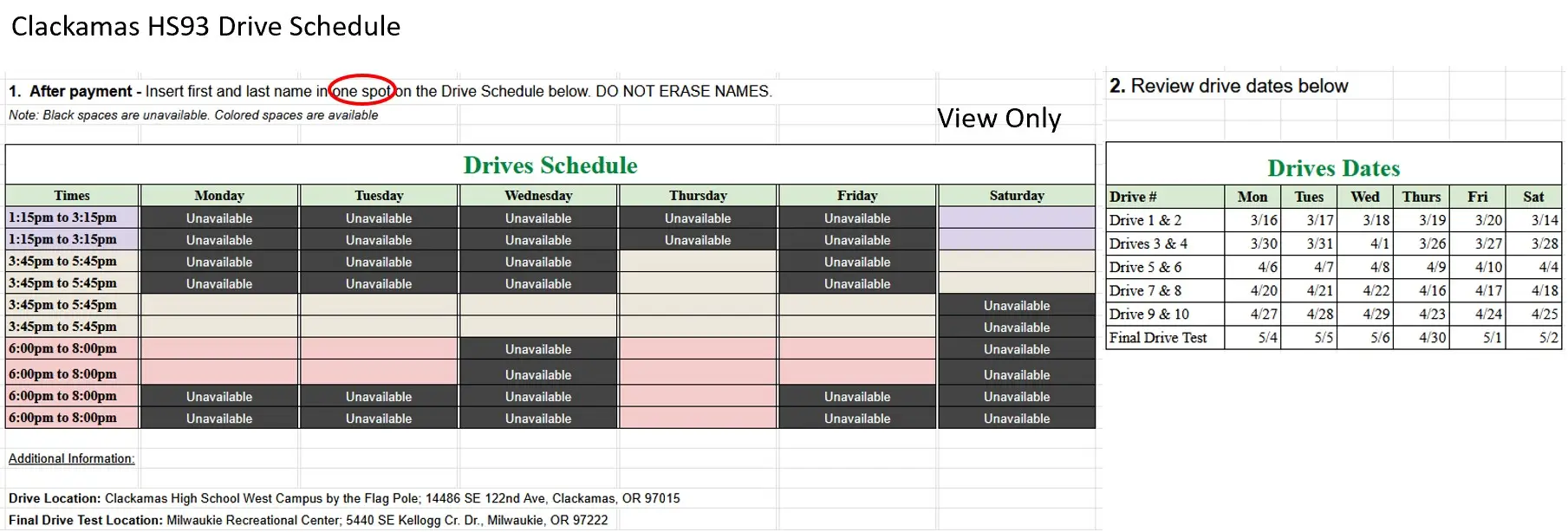 ** We are only accepting students that can attend all the classrooms and drive dates.