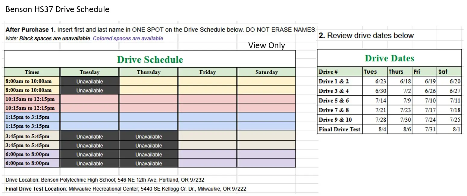 **We are only accepting students that can attend all the classrooms and drive dates. There is only 30 seats and no refunds if you sign-up with attendance conflicts.