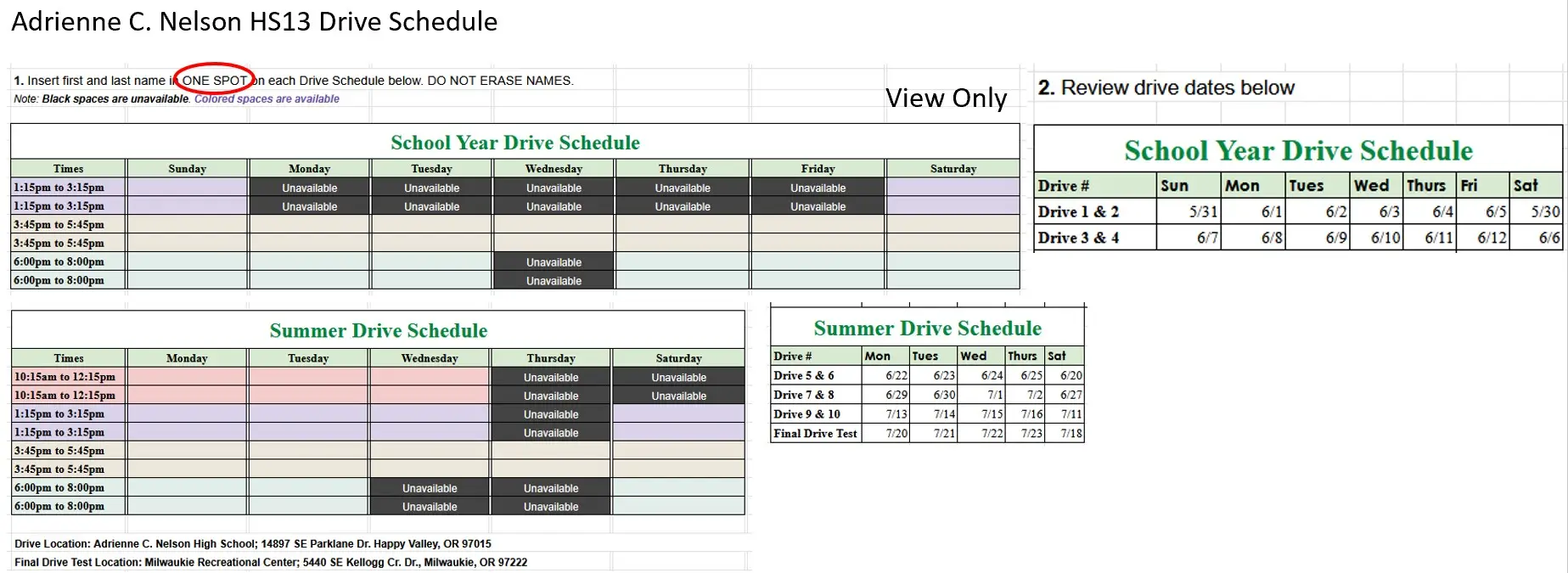 Drive Lesson Location: Adrienne C. Nelson High School; 14897 SE Parklane Dr. Happy Valley, OR 97015
