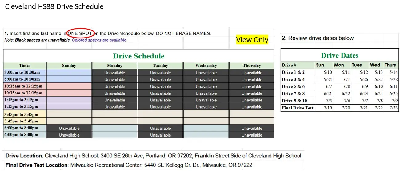 - We are only accepting students that can attend all the classrooms and drive dates.