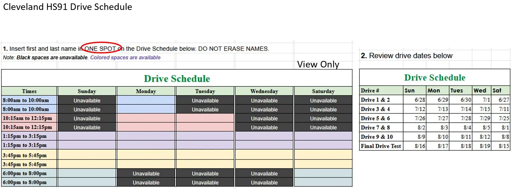 SAME DAY SIGN-UP FOR DRIVE TIMES