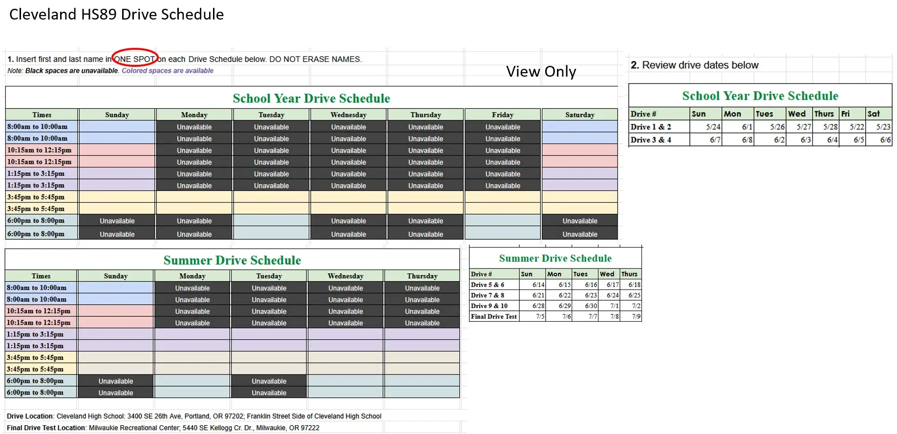 - We are only accepting students that can attend all the classrooms and drive dates.