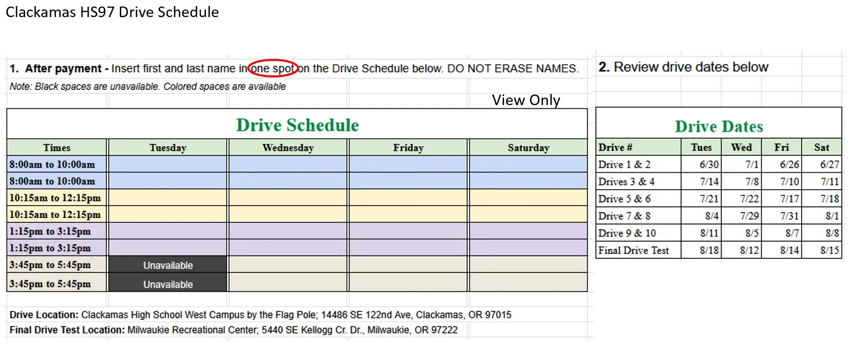 We are only accepting students that can attend all the teen drivers ed classrooms and drive dates.