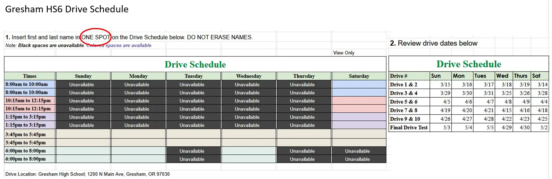Drive Lesson Location: Gresham High School; 1200 N Main Ave, Gresham, OR 97030